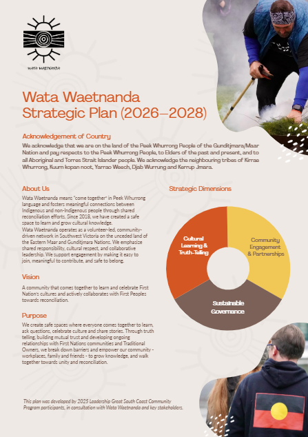 Strengthening the Circle will create a three-year strategic plan and recommend a governance model to support the future of Wata Waetnanda. The project will develop a comprehensive scoping report and SWOT analysis of the current organisational model. A thorough community consultation process will be undertaken to inform the work.