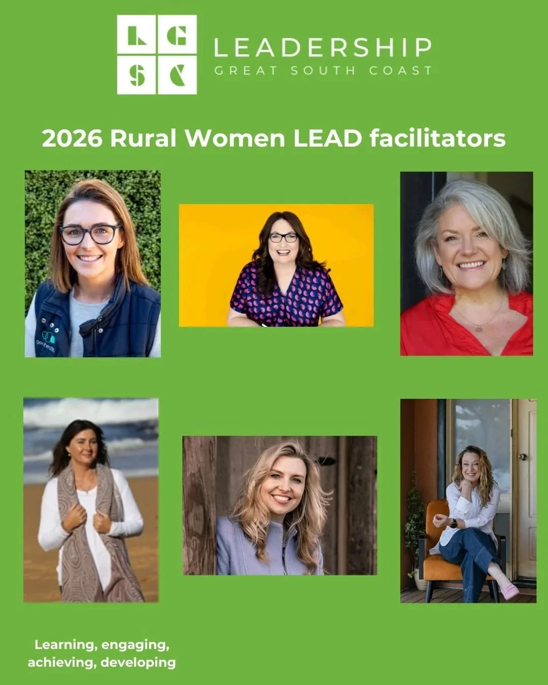 Rural Women LEAD creates opportunities for rural women across south west Victoria to learn, engage, achieve and develop (LEAD) together through a series of five workshops focusing on: